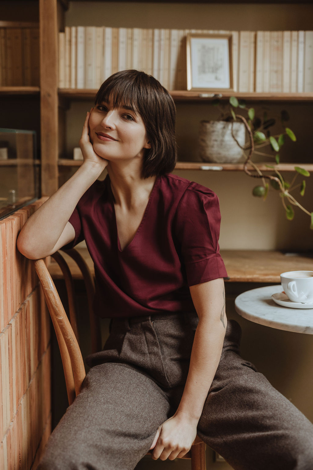 Le coloris lie de vin, classique mais moderne, se marie parfaitement avec des tons marrons, crèmes, bleus foncés ou des teintes plus neutres, avec la robe Roma vous êtes libre de jouer avec les styles.